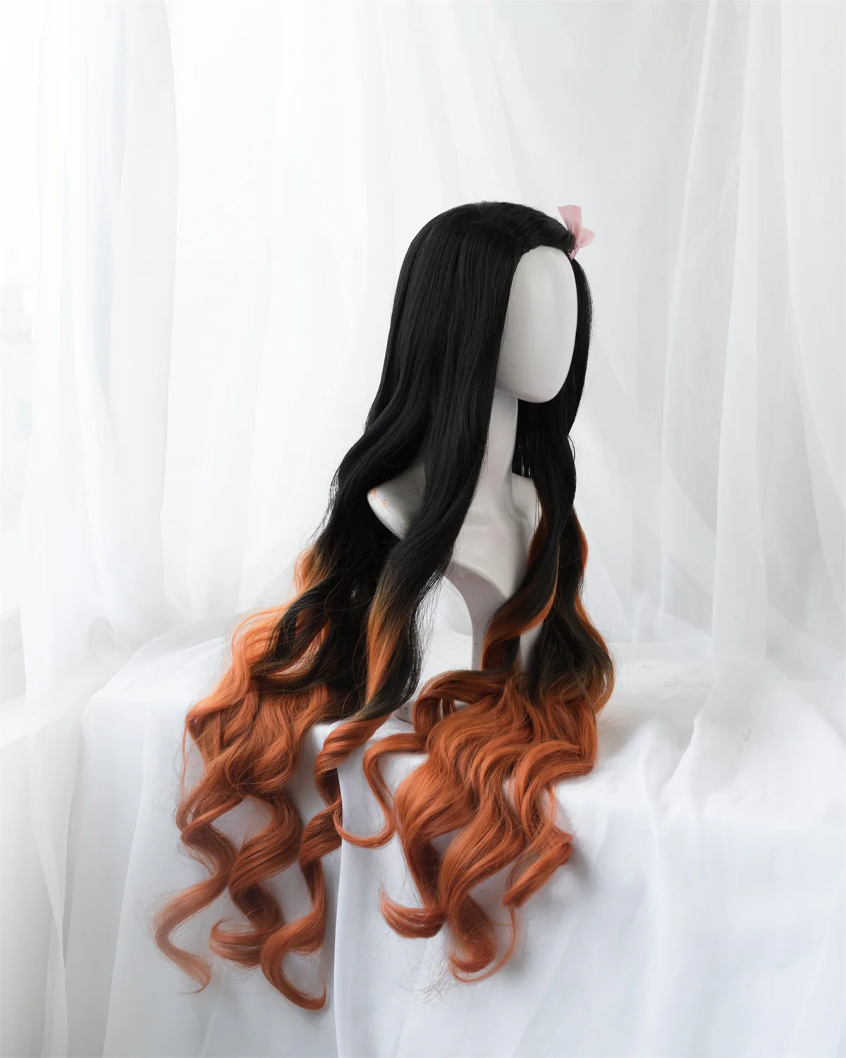 Uwowo Anime Nezuko Cosplay Wig 95cm Long Wavy Black Orange Gradient Wig