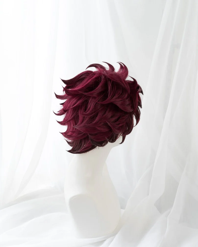 Uwowo Anime Tanjirou Cosplay Wig Corps Uniform Wig 25cm Short Wine Red Wig